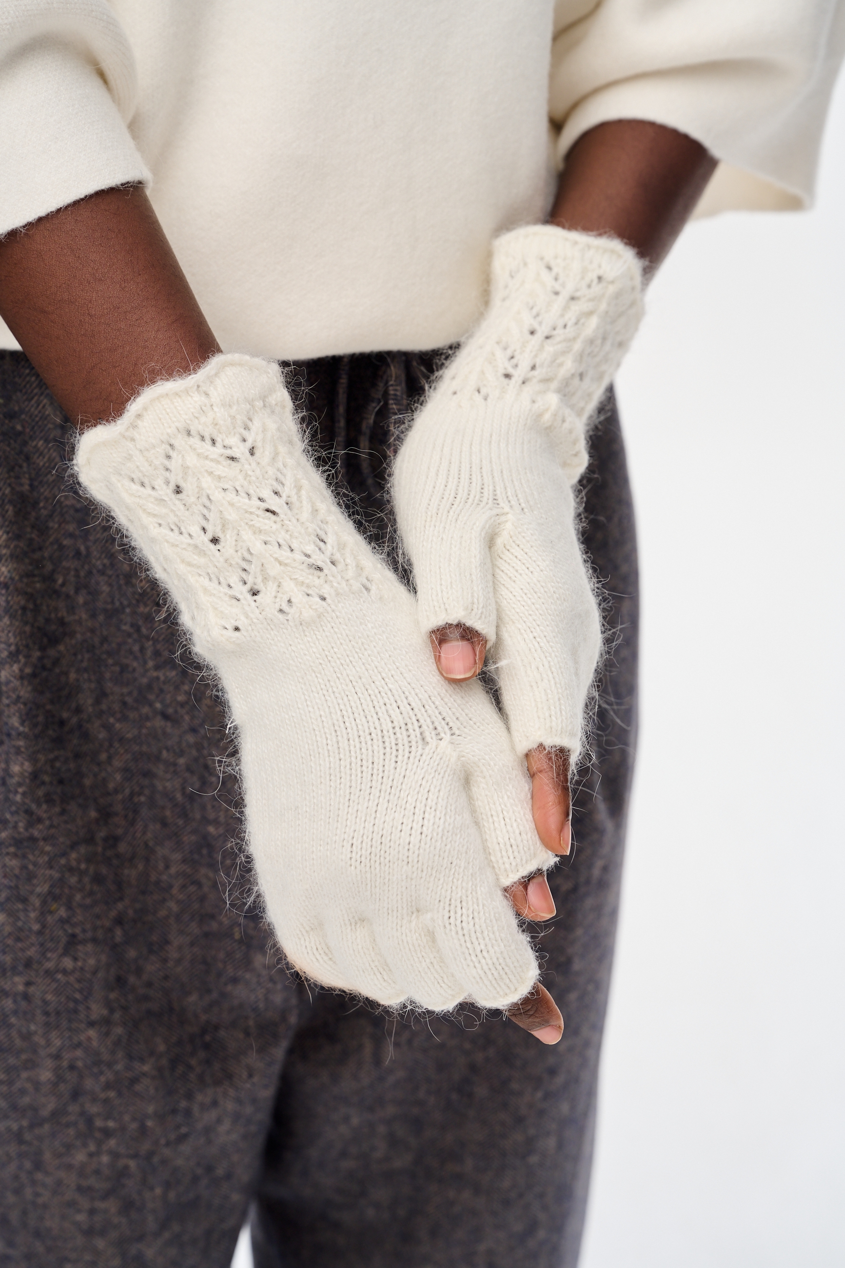 Rękawiczki damskie z odkrytymi palcami, wykonane z materiału o przyjemnej strukturze..