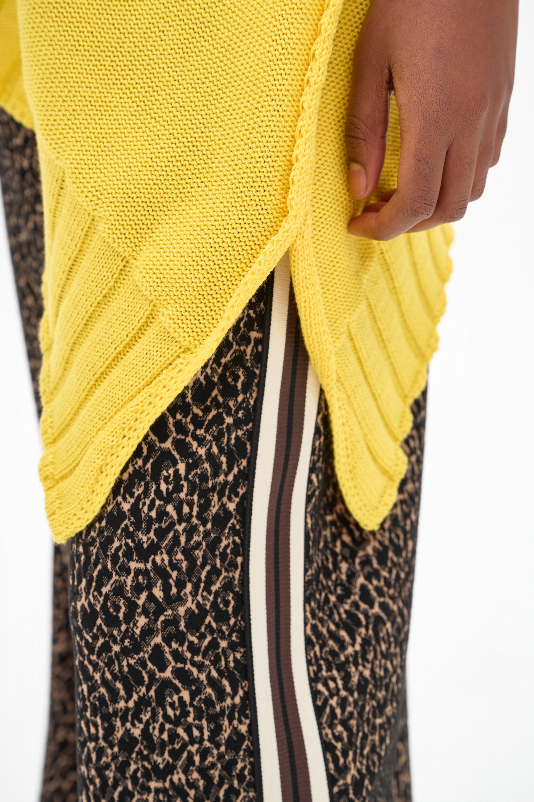 mankietami. Dół także zaakcentowany jest grubym ściągaczem w pionowe linie, rozciętym po