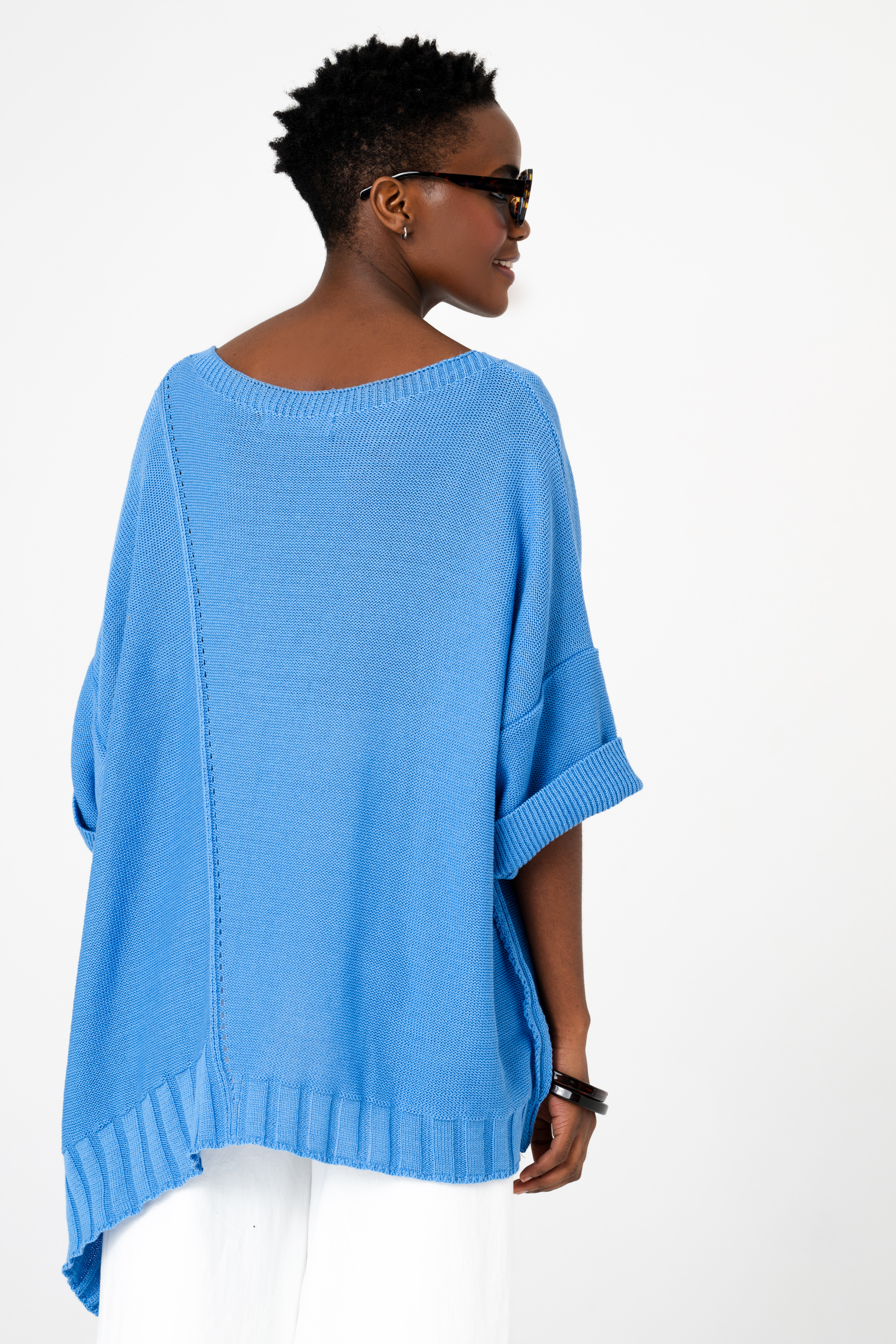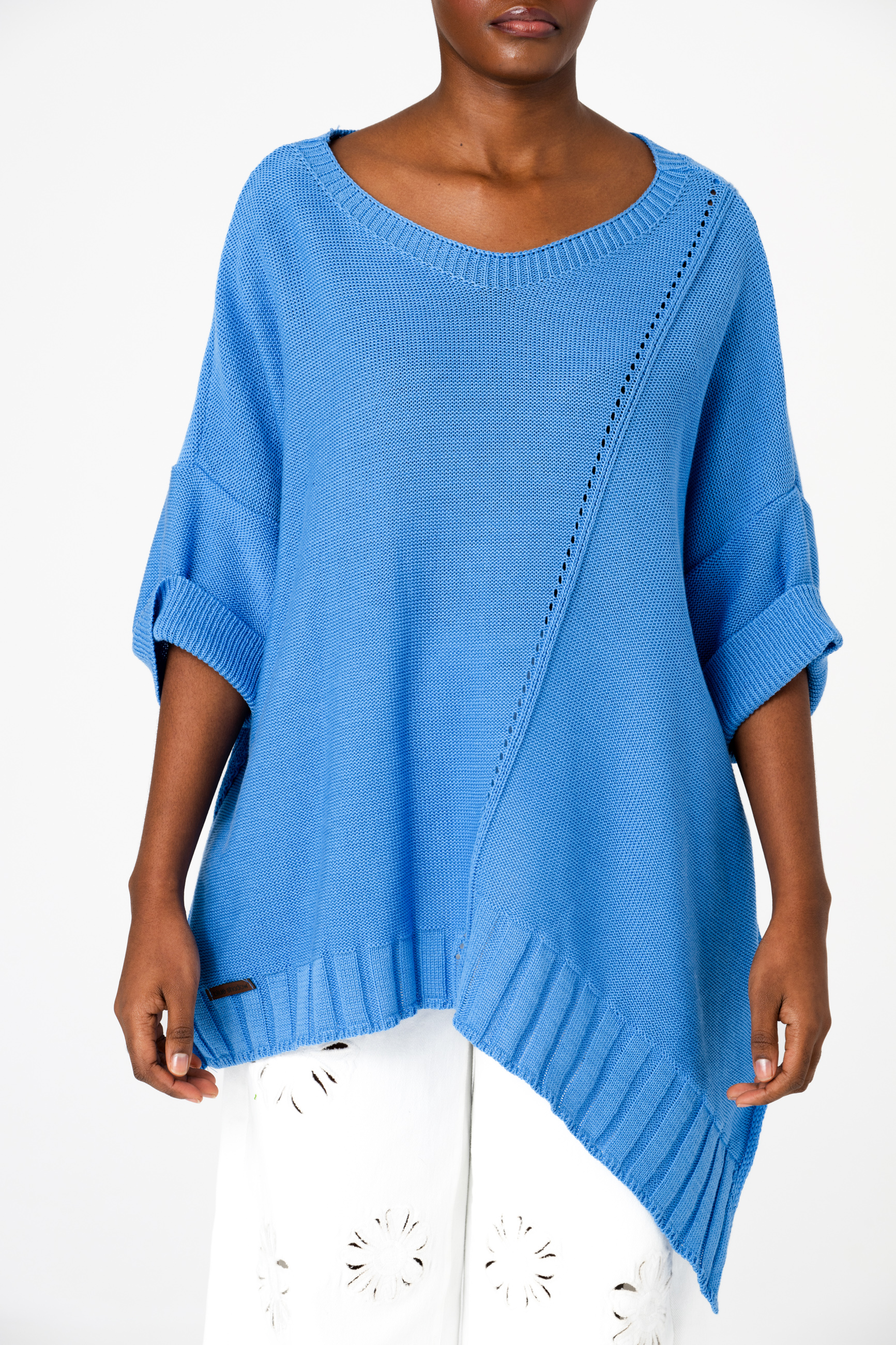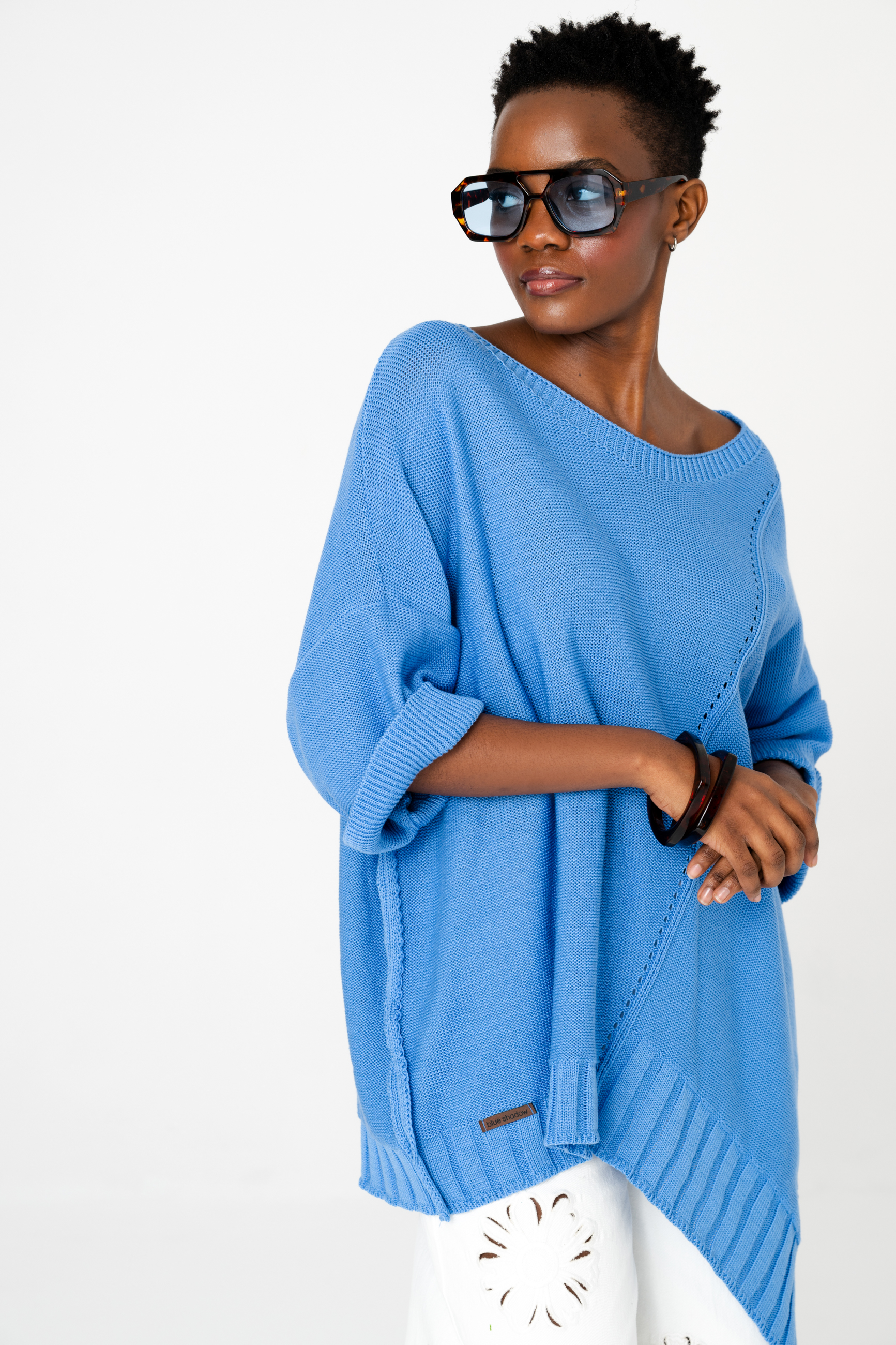 Ten wielozadaniowy sweter występuje w wielu kolorach do wyboru. Ma elipsowy dekolt oraz rękawki ¾, zakończone wywinietymi, ściągaczowymi