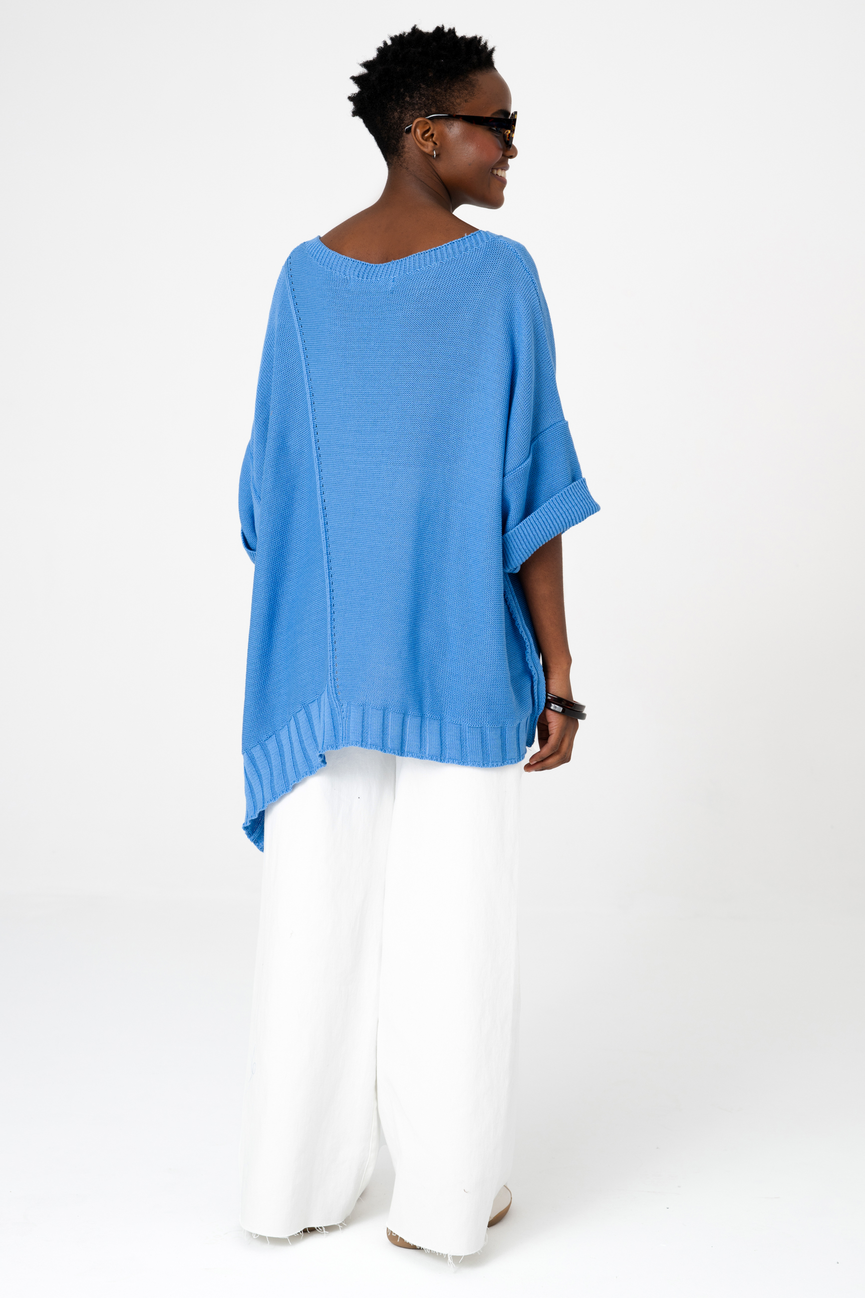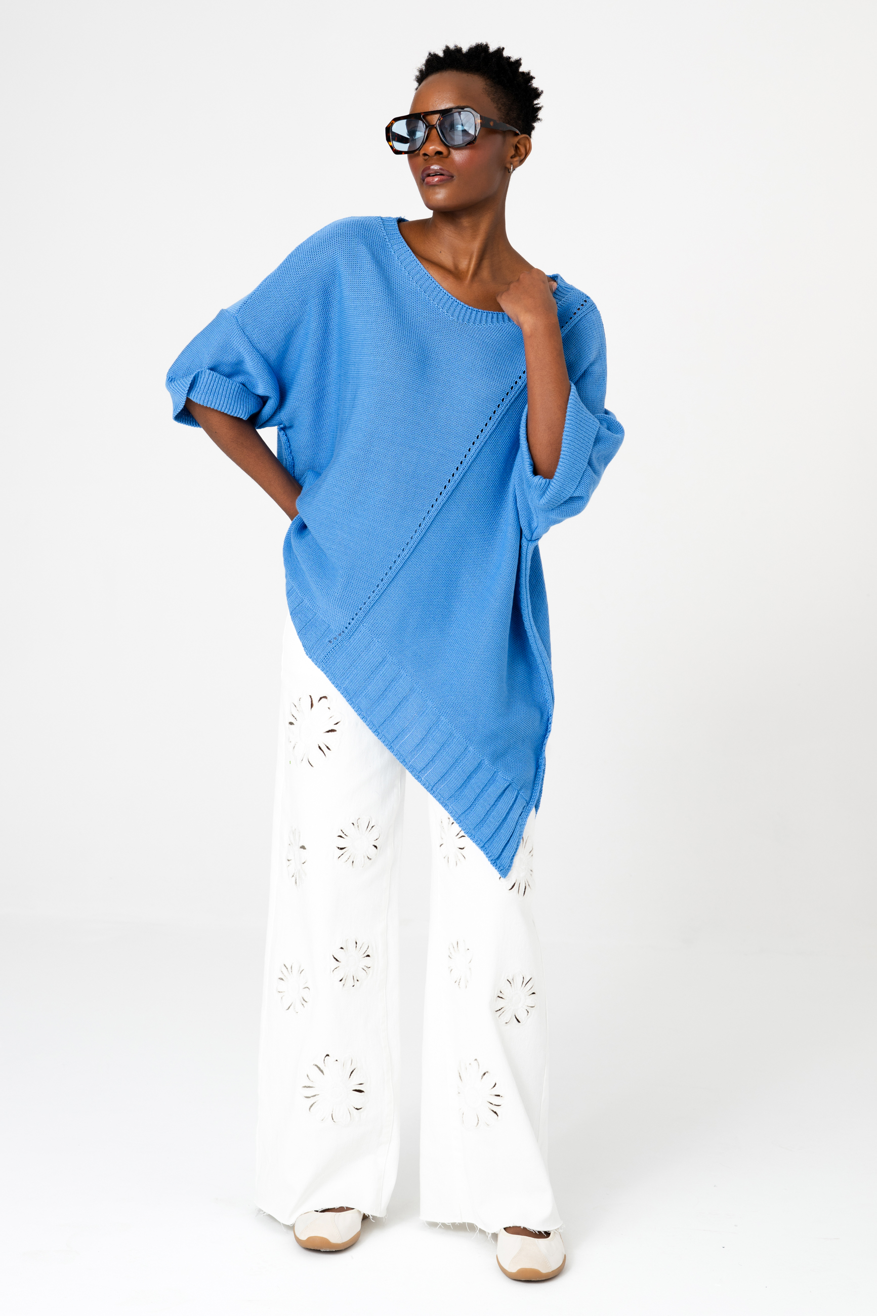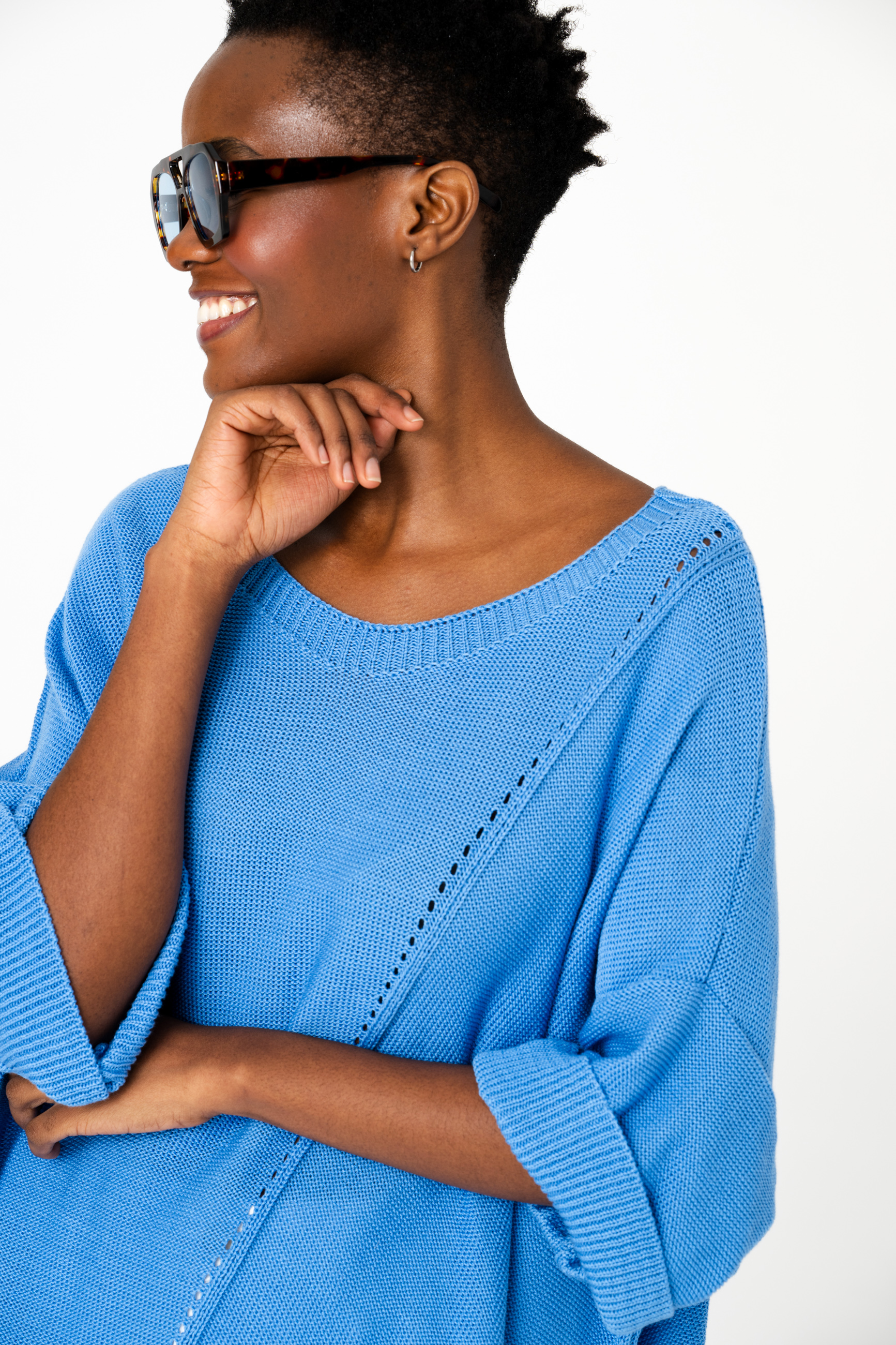 Ten wielozadaniowy sweter występuje w wielu kolorach do wyboru. Ma elipsowy dekolt oraz rękawki ¾, zakończone wywinietymi, ściągaczowymi
